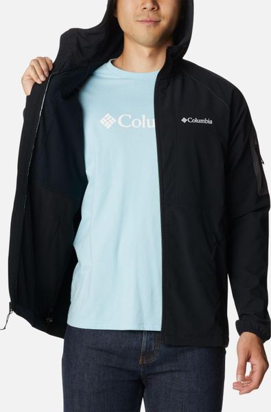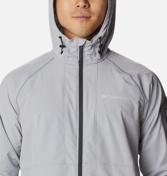From street to summit, this versatile softshell men's jacket protects you from the elements. Made with a water-resistant fabric, this jacket features a drawcord adjustable hood and hem to keep out the rain and wind. Not just comfortable, this Columbia softshell jacket is also practical with its zippered arm and hand pockets.