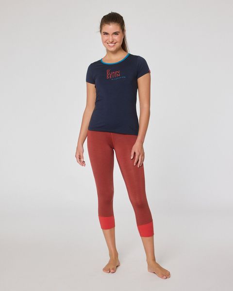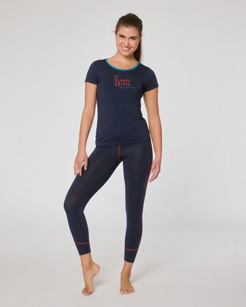 "The short-sleeved Merino D'sunnseitn Night Blue shirt from Ein schu00f6ner Fleck Erde is the perfect choice for fashion-conscious women who value sustainability and comfort. Made from mulesing-free merino wool and TENCELu2122, this shirt offers exceptional softness and ensures natural moistureand temperature regulation. It is not only ideal as a basic tank top in summer, but also as an additional layer in winter. The shirt was designed in Austria and produced fairly in the EU, making it a responsible and environmentally friendly piece of clothing."