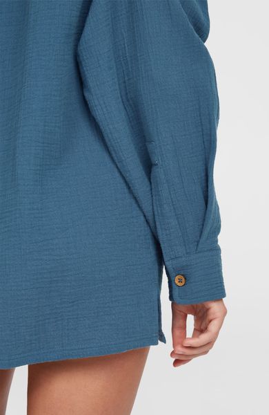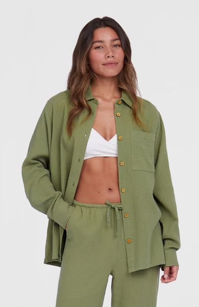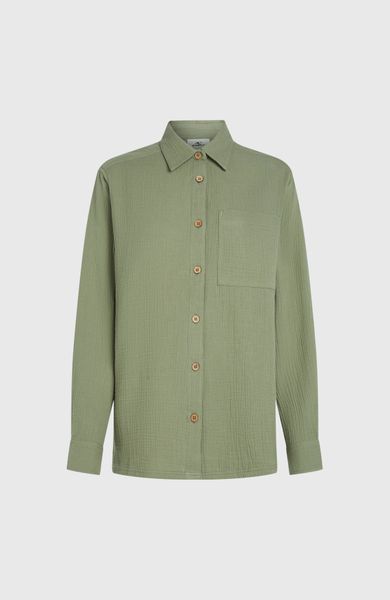 "The Brenda blouse from O'Neill is a versatile garment that is perfect for everyday wear, swimming, water sports and leisure activities. Thanks to its lightweight and breathable muslin texture, it is the ideal choice for beach days and city adventures. The blouse is made of 100% cotton, which makes it comfortable to wear and ensures optimum breathability. The coconut buttons not only provide a chic fastening option, but also give the blouse a natural touch. Practical details such as side slits and a roomy patch pocket on the front make it the perfect companion for any occasion. The functional button placket at the cuffs offers additional adjustment options and rounds off the design."