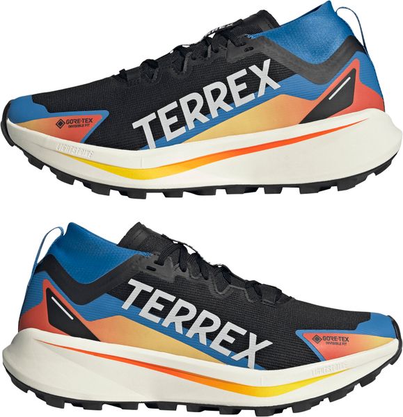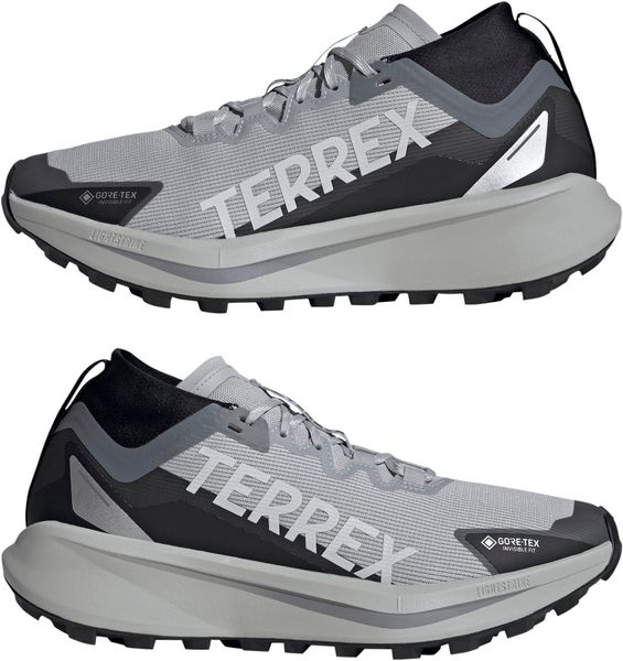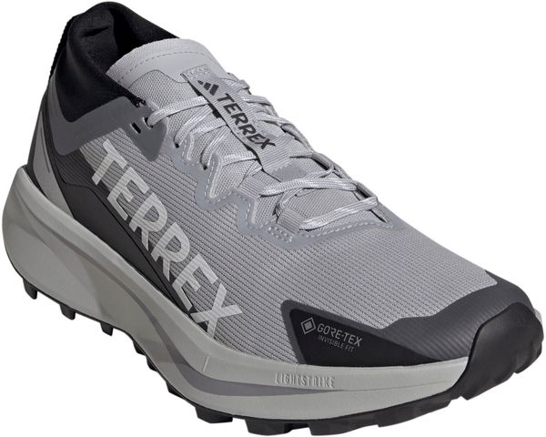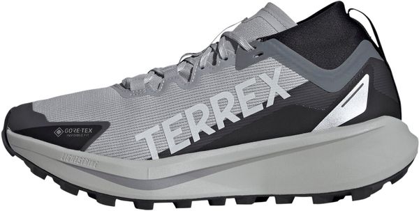 "The Terrex Agravic GTX trail running shoe from adidas Terrex is the ideal companion for demanding runs and speed hiking adventures. Equipped with a waterproof and breathable GORE-TEX Invisible Fit membrane, this shoe offers optimum protection from the wet, while the meshupper material with TPUoverlays provides additional durabilityu00e4. The regular fit and lace system guarantee a secure fit, while the tongue connected to the upper material prevents the ingress of stones and dirt."