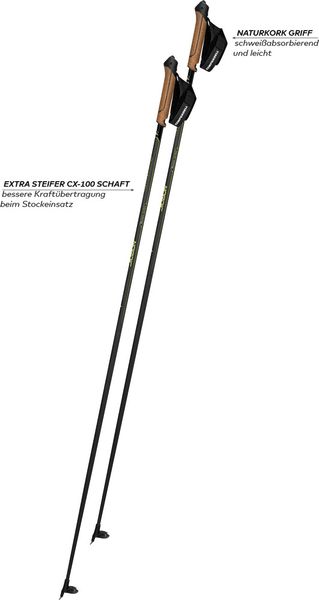 "Whether you are an experienced cross-country skier or just starting out with skating, the Nordic CX-100 Cork offers you the perfect balance between performance and comfort. Let the quality and precision of this pole convince you and see how it takes your cross-country skiing experience to the next level."
