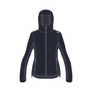 "This stylish softshell jacket for women combines modern design with high functionality. The FIX Hood jacket from CMP features a fixed hood with a unique honeycomb jacquard pattern that is not only visually appealing, but also offers additional protection. Equipped with the innovative Clima Protectu00ae technology, this jacket guarantees optimum comfort and technical protection in all weather conditions. The waterproof outer material with a water column of 7,000 mm keeps you reliably dry, while the breathability of 3,000 MVP ensures that excess heat and moisture are effectively transported to the outside"