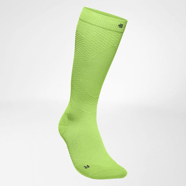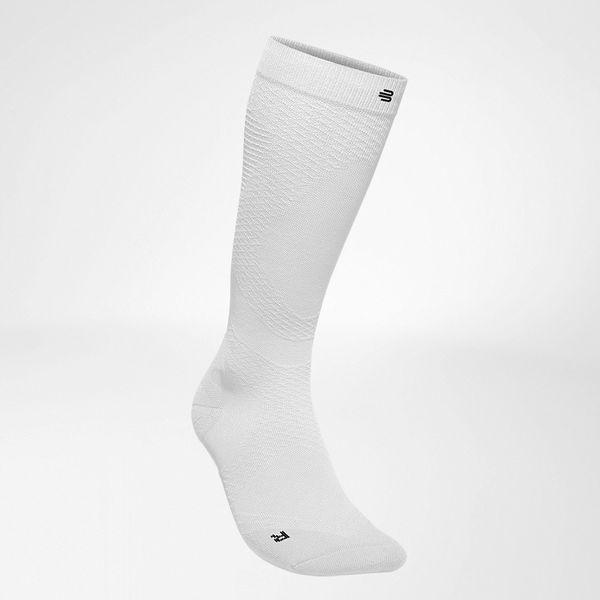 "Thanks to Targeted Compression Zones, your muscles get the decisive boost when they need it. The Run Ultralight Compression Socks are Bauerfeind's running socks for the highest performance. The ultra-light socks provide optimum ventilation, fit your feet like a second skin and ensure a high level of comfort even in warm climates.u00a0Optimal energy management and high breathability thanks to a wide-meshed knitu00a0The Run Ultralight Compression Socks combine the best features of lightweight sports compression socksu00fcmpfe: The ultra-thin knit is particularly breathable and thus ensures a pleasant running sensation u00u2013 even on warmer daysu00e. Integrated compression zones support the muscles in the calf and stabilize the ankle and foot. Unique compression zones on the calf reduce muscle vibrations and stimulate blood circulation. As a result, the muscles fatigue more slowly when running and more free energy reserves remain. The u201eInfinity Zoneu201c provides protection against overloading: it slightly raises the foot arch and supports the ankle jointu201c by applying light pressure.u00a0The comfort zones u201eRelief Soleu201c and u201eHeel Protectionu201c protect the sole of the foot and reduce the pressure on the heel when the foot is placed in the running shoe. The recess u201eAchilles Comfortu201c relieves pressure on the Achilles tendon and prevents irritation in this sensitive area. The correct size of the Run Ultralight Compression Socks is determined by the shoe size and the calf circumference at the strongest point. As a result, the sports compression socks fit perfectly on the skin and have an optimal effect. They are manufactured to the highest quality standards in Germany"