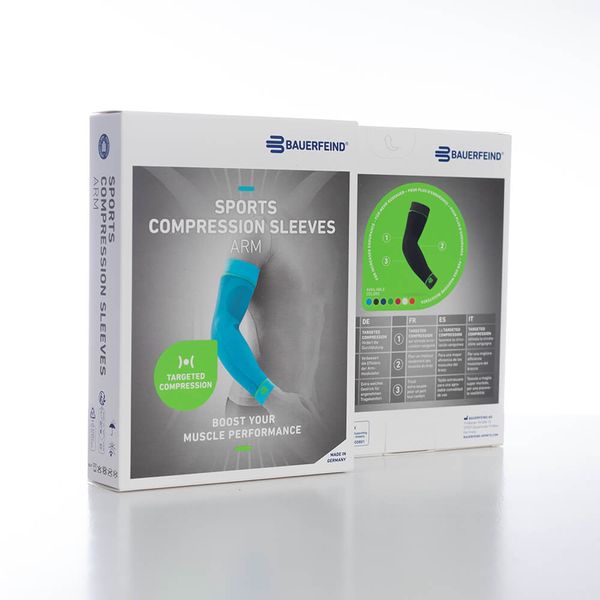 "Experience a new dimension of athletic performance with the Sports Compression Sleeves from Bauerfeind. These innovative compression sleeves promote improved blood circulation, which decreases from the wrist to the upper arm, thus ensuring more power, greater endurance and shorter recovery times. The special medically effective compression ensures that the muscles are optimally supplied with oxygen, which increases performance and speeds up regeneration. In addition, the arm muscles are quickly warmed up, which minimizes the risk of injury"
