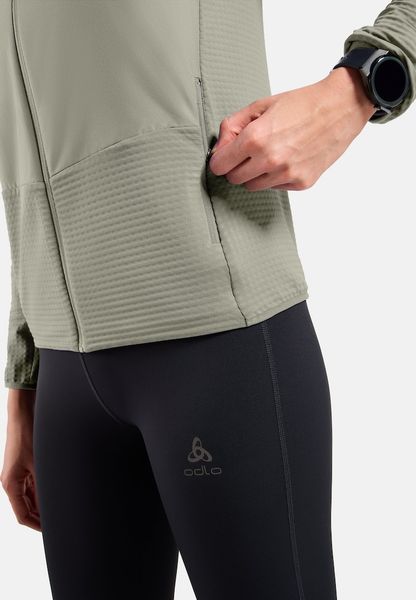 "Experience unparalleled warmth and targeted insulation with the Essential Insulator Hybrid Jacket from Odlo. This versatile women's jacket is the ideal companion for outdooractivities such as hiking, skiing and running. Thanks to the innovative Thermo-Grid-Fleece material, the jacket offers excellent thermoregulation and keeps you pleasantly warm even in cold weather. The strategically placed windproof insulation zones reliably protect you from the elements, while the synthetic insulation made from recycled materials retains additional warmth without restricting freedom of movement."