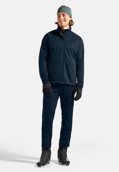 "The Essential Warm jacket from Odlo is the perfect companion for anyone who enjoys cross-country skiing or downhill skiing. This men's jacket combines functionality with comfort and offers protection from wind and cold thanks to its windproof and pleasantly warm three-layer softshellmaterial. The brushed inside ensures a cozy feel, while improved breathability is guaranteed by strategically placed jersey inserts with stretch at the back and under the arms"