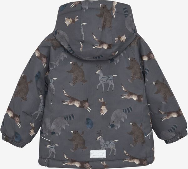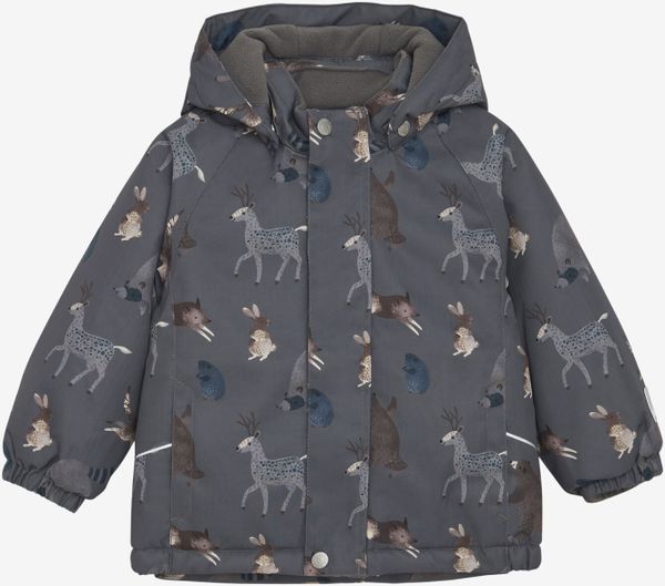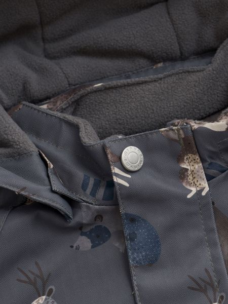 "The warm snow jacket with all-overprint from Minymo combines functionalityu00e4t and style to equip your child for winter adventures. Made from 100% polyester and with a soft fleece lining, this jacket offers outstanding comfort and thermal insulation. The detachable hood and elasticated cuffs ensure a customizable fit that adapts to your child's needs."
