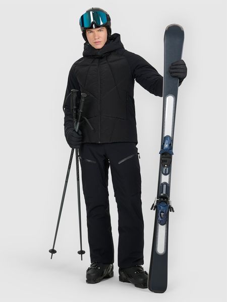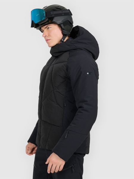 "The M658 down jacket from 4F is the ideal choice for men who value both style and functionality when skiing. Thanks to its Primaloftu00u00ae Silver RISE and Primaloftu00u00ae Black insulation in special zones, this down jacket offers optimum insulation so that you are well protected even at low temperatures. The integrated hood with 3D adjustment and the profiled hood provide additional protection from wind and weather"