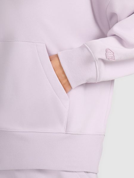 "Discover the F1887 sweatshirt from 4F, the perfect garment for women who value style and comfort in equal measure. This sporty sweatshirt is made of high-quality cotton and features a soft and warm inside thanks to the knitted fabric on one side, making it comfortable to wear even on cooler days. The padded hood not only protects against wind and weather, but also gives the sweatshirt a casual look."