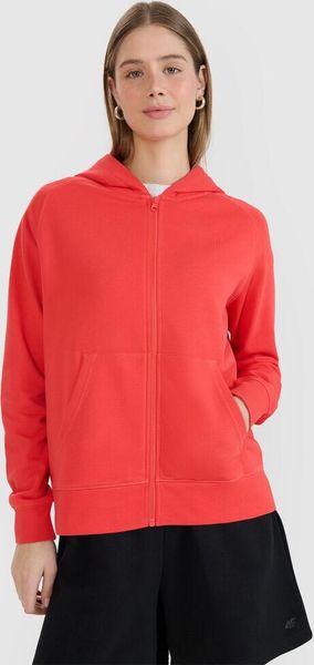 "Discover the sporty F1763 sweatshirt from 4F, which has been specially designed for women and impresses with its casual style and high level of comfort. Made from high-quality cotton material, this hoodie has a particularly soft and warm inside thanks to the French terry knit, which will keep you nice and warm even on cooler days."