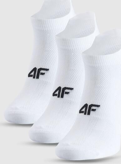 "The 4F FNK F244 socks in a practical 3-pack are the ideal choice for all sports enthusiasts who value comfort and functionality. These training socks are specially designed for fitness and running activities and offer optimum support thanks to their ankle-high fit. Thanks to the elasticated foot and elastic support, they offer a perfect fit and prevent slipping during training."