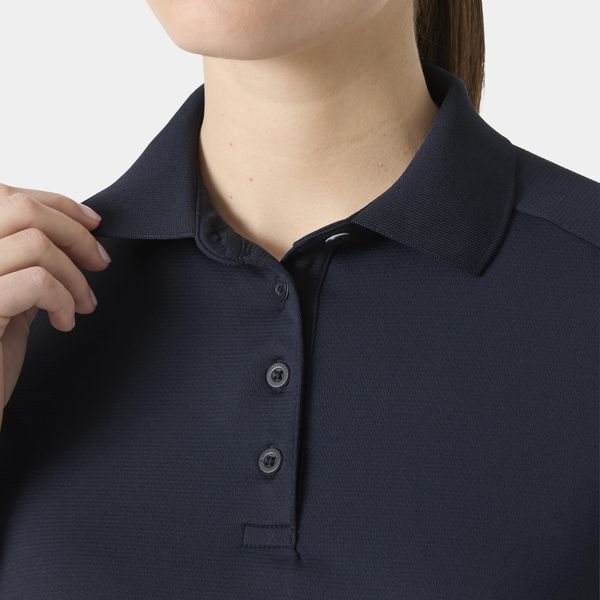 "The HP Salina polo shirt from Helly Hansen is the ideal choice for women looking for a lightweight and quick-drying garment for leisure, everyday wear and sailing. Thanks to its composition of 94% recycled polyamide and 6% elastane, it not only offers comfort but also freedom of movement, making it perfect for urban and work activities. A special highlight of this polo is the integrated UV protection with a UPF of 50+, which reliably protects your skin during sunny outings on the water or in the marina."
