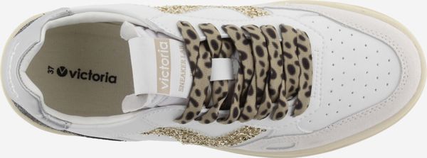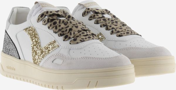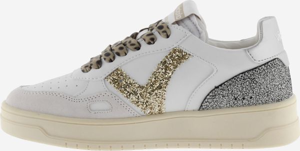 "The stylish sports shoes for women from Victoria combine elegance with sporty functionality. Made from a high-quality soft material with a leather look, these shoes feature fanciful suede elements that give them a unique look. A particular highlight is the u201evictoriau201c-V on the side, which, together with the glittering heel section and the metallic heel section, creates a glamorousu201f6 accent. The embossed brand logo on the heel underlines the exclusivity of this model."