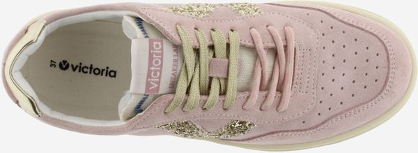 "Experience the perfect mix of style and functionality with the Seul Serrje sports shoes for women from Victoria. These shoes are made of high-quality suede and offer a fashionable look that is further enhanced by the glitter Victoria-"V" on the side and the metallic heel piece. The double lacing, consisting of a pair with a slight metallic effect and another round, tonal pair, not only ensures a secure fit, but also an individual style."