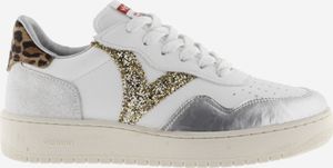 "Experience the stylish and sporty look of the Madrid Metalizado & Animal Print Women sports shoes from Victoria. Made in Spain, these women's shoes combine an elegant soft leather look with imaginative suededetails. A special highlight is the Victoria-V in sparkling glitter on the side, which adds a touch of glamor to every step. The heel cap in a trendy animalprint and the metallized detail on the toe area add additional fashionable accents"