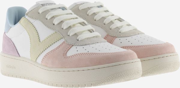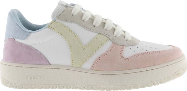 "These fashionable ladies sports shoes from Spain combine stylish design with high functionalityu00e4t. Made by Victoria, the shoes have an elegant white leather look, accentuated by striking multicolored suede details that add that certain something to any outfit. The perforated toe section ensures optimum breathability, making them the ideal companion for the whole day. The lightly tinted PVC sole contains recycled fu00fll materials, which is not only good for the environment, but also ensures a comfortable fit. Whether for sporting activities or everyday wear, these shoes offer comfort and style in one."
