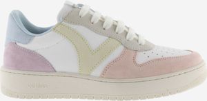 "Discover the stylish and environmentally conscious women's sports shoe made in Spain by Victoria. The Madrid Serraje Multicolor Women combines an elegant white leather look with eye-catching, multicolored suede details that add a fashionable accent to any outfit. The perforated toe section ensures optimum breathability, making this shoe the ideal companion for all-day wear."
