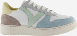 "Discover the stylish and environmentally conscious women's sports shoe made in Spain by Victoria. The Madrid Serraje Multicolor Women combines an elegant white leather look with eye-catching, multicolored suede details that add a fashionable accent to any outfit. The perforated toe section ensures optimum breathability, making this shoe the ideal companion for all-day wear."