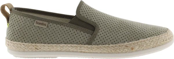 "Experience the ultimate in comfort and style with the Andru00e9 Elu00e1sticos Antelina Picada Men espadrilles from Victoria. These men's shoes are made in Spain from high-quality, perforated suede, which is not only visually appealing but also ensures excellent breathability. The rubber inserts on the sides guarantee optimum support and comfort with every step, while the bambalogo label on the side is a stylish detail that catches the eyeu00e4."