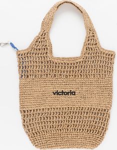 "Handmade tote bag made of natural fiber fabric with embroidered logo and practical inner cord for stylish functionality."