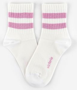 "The Calcetu00edn Algodu00f3n Lurex Women by Victoria is the perfect choice for fashion-conscious women who value style and comfort. This elegant women's sock is made from high-quality cotton and is decorated with stylish lurexstripes that add a touch of glamor to any outfit. The subtle brand embroidery on the sole underlines the exclusive quality and fashionable design of the socks"