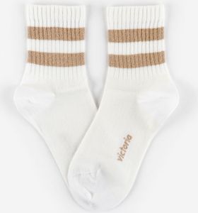 "The Calcetu00edn Algodu00f3n Lurex Women by Victoria is the perfect choice for fashion-conscious women who value style and comfort. This elegant women's sock is made from high-quality cotton and is decorated with stylish lurexstripes that add a touch of glamor to any outfit. The subtle brand embroidery on the sole underlines the exclusive quality and fashionable design of the socks"