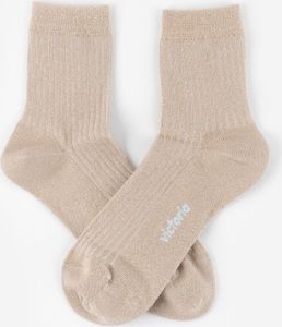 "The Calcetu00f6n Lurex Women by Victoria are luxurious women's socks that impress with their elegant lurexlook. With an embroidered brand logo on the sole, they make a stylish statement and can be perfectly combined with Victoria sneakers. These socks are not only a fashion highlight, but also a comfortable companion for everyday wear."
