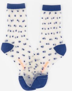"Transparent women's socks with polka dots and fluorescent brand embroidery, perfect for combining with sneakers."