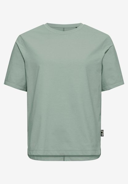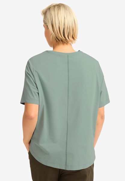 "Thanks to the integrated UV protection, the T shirt reliably protects you from harmful sunlight so that you can enjoy the sun without worrying. The innovative TEXADRI fiber technology makes the shirt moisture-regulating and quick-drying, which makes it extremely breathable and ideal for active days. Whether you're strolling around town or traveling, the Travel T W will keep you fresh and dry. With a back length of 63 cm, it is perfect as a base layer or worn on its own"