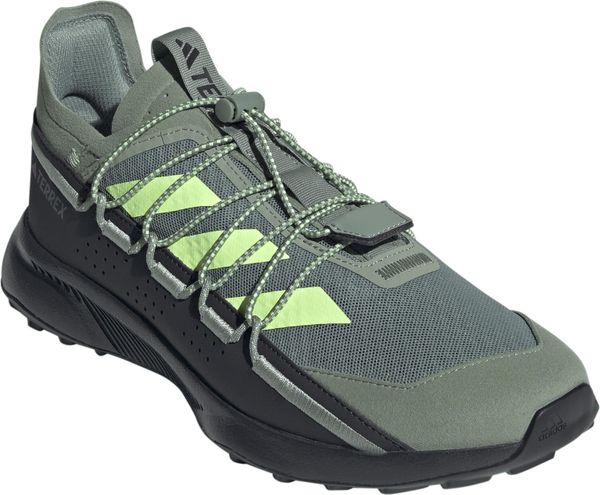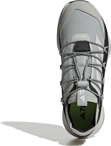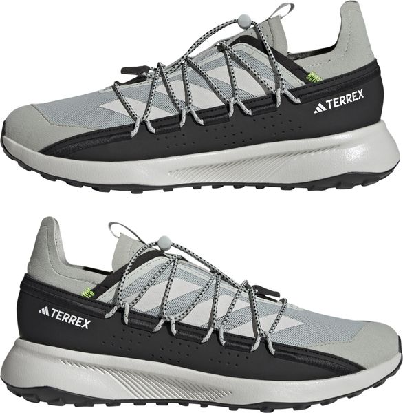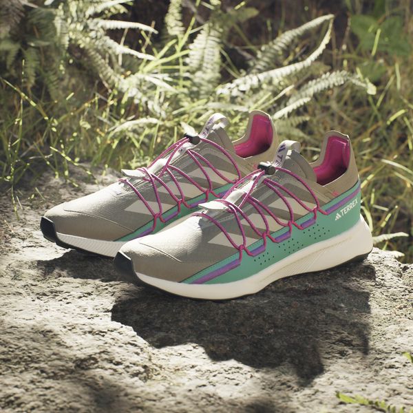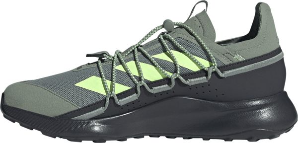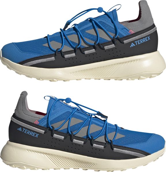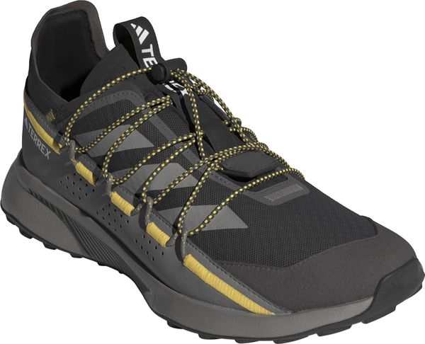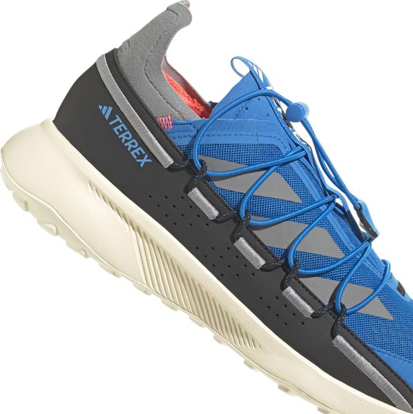 "The Terrex Voyager 21 Travel Shoes from adidas Terrex are the ideal companion for all outdooradventures and travel. These versatile shoes combine the robust functionality of a trail runner with a lightweight, flexible design that is perfect for efficient packing. The open-pored mesh upper ensures that your feet can breathe, while the snug fit and elasticated laces allow for easy entry. Simply slip them on, tighten the elastic band and you're ready for your next adventure."