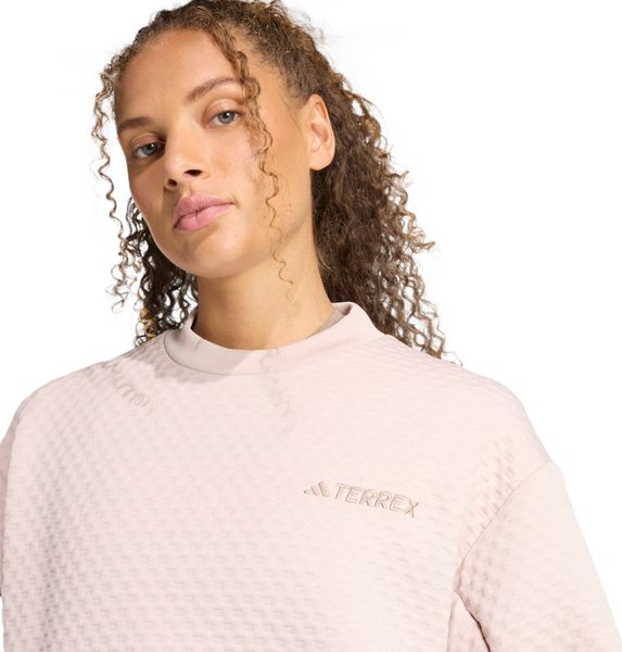 "The Terrex Xploric sweatshirt from adidas Terrex is the ideal companion for your outdooradventures. It is made from a comfortable double-knit material with a waffle structure that efficiently retains heat, making it comfortable to wear without being bulky. Especially on cooler days, you will appreciate the thumb openings on the cuffs, which prevent cold from penetrating and provide additional comfort."