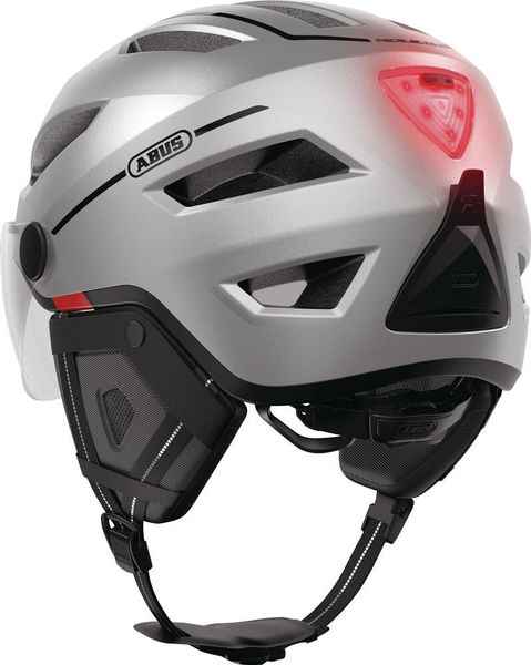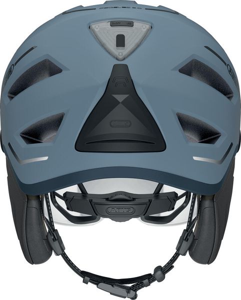ABUS Pedelec 2.0 ACE - a cycling helmet for all weather conditions With the Pedelec 2.0 ACE model, ABUS offers a modern and high-quality companion for city traffic. Reliable protection and visibility are essential, especially during rush hour. The special shape of this bike helmet offers a deep temple area for extra head protection. Additionally equipped with a bright rear light, the helmet is visible in the dark even from a distance. Other comfort features such as the fly net, visor and rain cover ensure a comfortable ride in any weather and in any environment. When it gets colder outside, you can attach the warming ear pads to the helmet. So you can get on your bike in all weathers. Thanks to the intuitive adjustment system on the half ring, the bike helmet adapts perfectly to the shape of your head. While riding, the ventilation system ensures a pleasant head feeling. Further product-benefits: ➦ LED-rear light: rechargeable via micro USB ➦ Ponytail-compatible: recess in the adjustment system offers space for long hairstyles such as braids ➦ Forced Air Cooling Technology for perfect ventilation ➦ Half ring: semi-enclosing plastic ring connected to the adjustment system ➦ Fidlock-magnetic belt buckle - magnetic helmet closure ➦ Lower edge protection: an additional outer shell attached to the lower edge protects the helmet from signs of wear ➦ Meets the requirements of Dutch standard NTA 8776 (Suitable safety helmets for S-pedelecs)