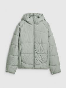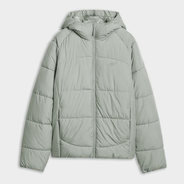 "The Down Jacket M0708 from 4F is the perfect choice for men who value functionality and comfort. With its hydrophobic DWRimpregnation, this jacket offers excellent protection against moisture by preventing water from penetrating and instead allowing it to roll off in droplets. The synthetic down filling not only provides excellent insulation, but is also easy-care, hypoallergenic and mold-resistant. Even in contact with moisture, the jacket retains its thermal performance and dries faster than natural down."