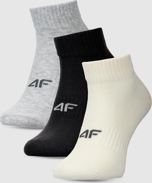 "Experience comfort and warmth with the 4F CAS F448 socks in a practical 3-pack, specially designed for women. These sports style socks are made of high-quality cotton, which makes them comfortable to wear and keeps your feet warm at the same time. The padded socks are ideal for colder days and offer optimum protection thanks to their ankle-high fit."