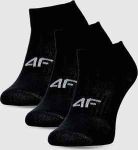 "With a material mix of 73% cotton and 24% polyamide, these socks impress with their softness and durability. The cotton makes them comfortable to wear, while the polyamide content increases their resistance to stretching and creasing. The 4F logo on the middle foot gives the socks a sporty touch. The pressure-free cuffs hold the socks securely in place without constricting."