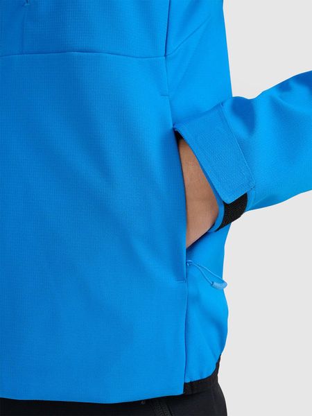 "The jacket impresses with its functional features, which have been specially designed for outdooractivities. An integrated hood with 3D adjustment and profiled peak protects the head from the wind, while the chin guard provides additional comfort. Thanks to the adjustable Velcro® cuffs, you can adjust the sleeves individually and enjoy optimum protection from the wind."