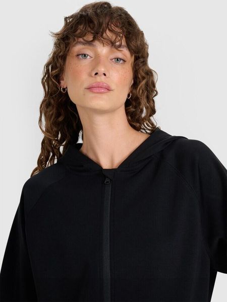 "The F1835 sweatshirt from 4F is the perfect companion for women who value comfort and style, whether for training, leisure or everyday urban life. This lightweight hoodie stands out with its modern regular fit and fashionable cropped cut, which offers the wearer a comfortable fit. The integrated hood and practical half zip make this sweatshirt a versatile piece of clothing that adapts easily to different weather conditions."