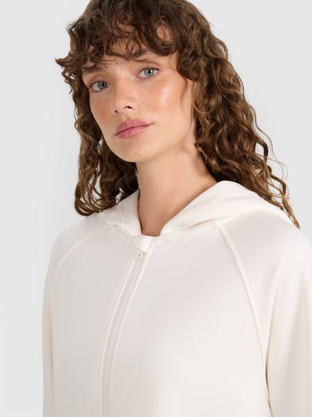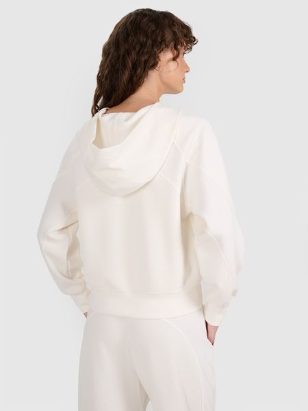 "The F1835 sweatshirt from 4F is the perfect companion for women who value comfort and style, whether for training, leisure or everyday urban life. This lightweight hoodie stands out with its modern regular fit and fashionable cropped cut, which offers the wearer a comfortable fit. The integrated hood and practical half zip make this sweatshirt a versatile piece of clothing that adapts easily to different weather conditions."