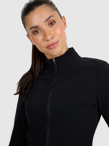 "Comfortable and warm women's sweatshirt with a stand-up collar and zipper, ideal for sport and leisure."