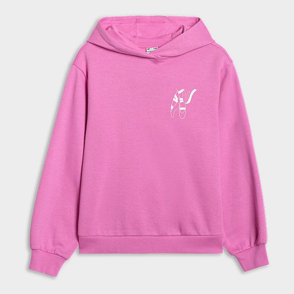 "Casual women's hoodie in an oversized cut for urban activities, with a warm lining and ballet motif."