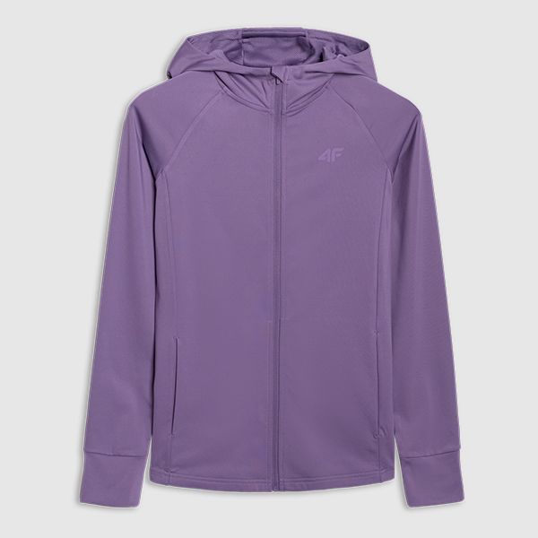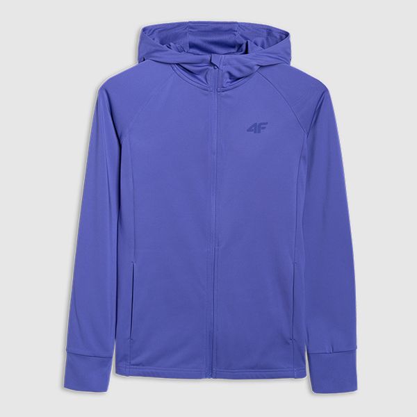 "The FNK F585 sweatshirt from 4F is the perfect choice for women who value comfort and functionality. Equipped with an integrated hood and a practical chin guard, this model offers optimum protection against wind and weather. The raglan sleeves ensure excellent freedom of movement, while the longer back provides additional protection and warmth."