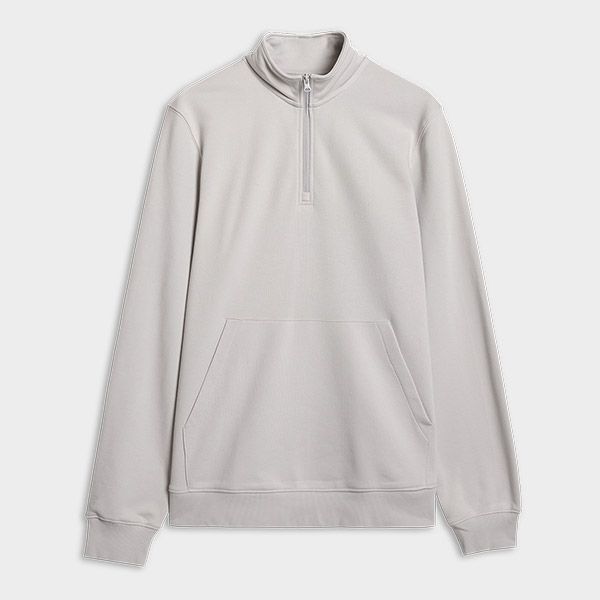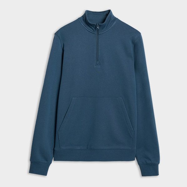 "Men's sweatshirt with a warm French terry knit, half-zip stand-up collar and a practical kangaroo pocket."