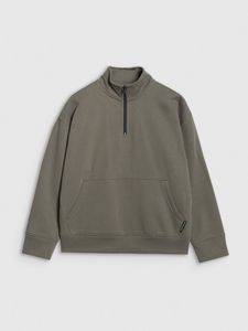 "Elegant and warm men's sweatshirt made of wool, ideal for leisure and everyday wear, with a practical half-zip and a cooler pocket."