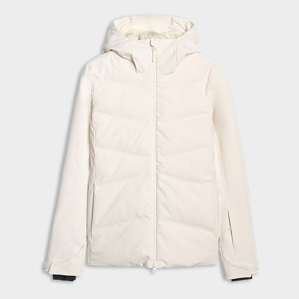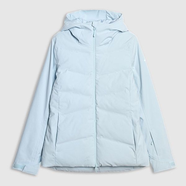 "The Technical Jacket F0806 from 4F is the ideal choice for women who are passionate about skiing. Thanks to the NEO DRY WP 10 000/MVP 8 000 membrane, this jacket offers optimum protection against wind and weather. The hydrophobic impregnation ensures that water simply rolls off, while the welded critical seams prevent moisture from penetrating the most sensitive areas. With a water column of 10,000 mm, the base layer stays dry even in heavy snowfall."