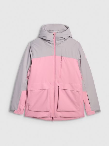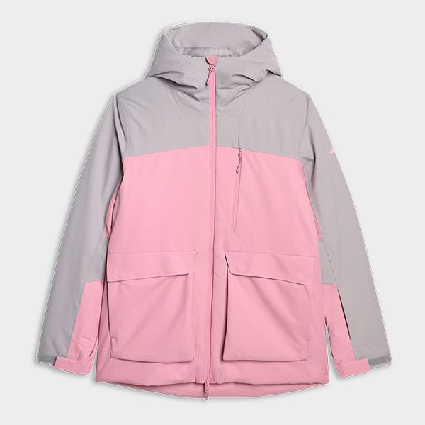 "The Technical Jacket F0956 from 4F is the perfect choice for women who don't want to compromise on skiing. This jacket combines functionality and style with an impressive 8000 water column rating to keep you dry in even the most adverse weather conditions. The NeoDry membrane not only offers excellent protection against wet conditions, but also ensures optimum breathability so that moisture can escape from the inside out. The DWRimpregnation and welded seams provide additional protection by preventing water from penetrating through the seams."