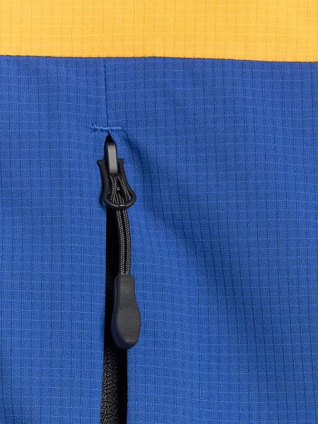 "Particularly noteworthy are the jacket's welded critical seams, which prevent water from penetrating the most sensitive areas. The outer layer has a water-repellent impregnation that provides additional protection. Practical details such as the 3D-adjustable hood, the underarm slits with zipper and the profiled sleeves ensure a perfect fit and freedom of movement."