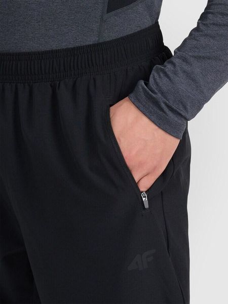 "The Trousers FNK M1068 are equipped with the innovative 4F dry technology, which ensures a quick-drying finish. This makes them ideal for outdooractivities or intensive training sessions, as moisture is efficiently wicked away. Two practical side pockets with zippers offer secure storage space for your essentials and make these trousers a functional everyday companion"
