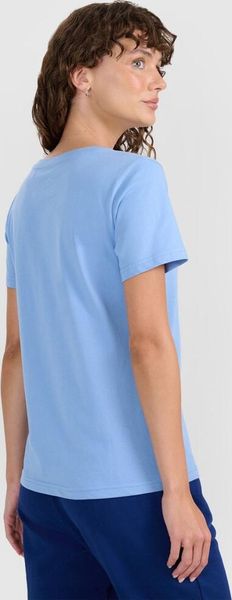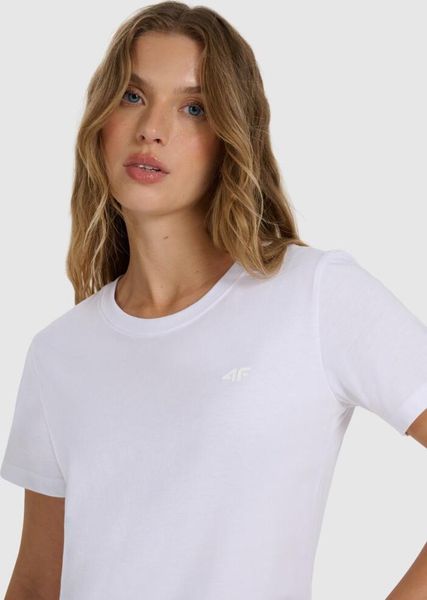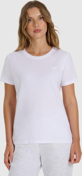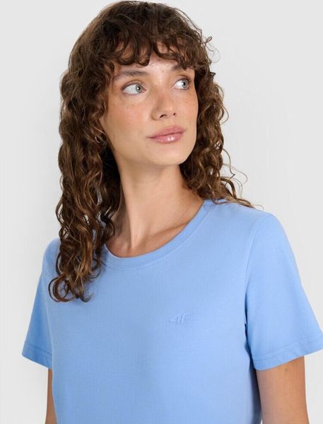"Experience the comfort and versatility of the women's T-shirt from 4F, which is perfect for leisure and everyday wear. This stylish top is made of high-quality wool and offers a smooth, stretchy surface that feels pleasant to the touch thanks to the single jersey knit. With a light weight of 160 g/mu00b2, it is ideal for warm summer days, but can also be worn as an additional layer under a sweatshirt in winter."