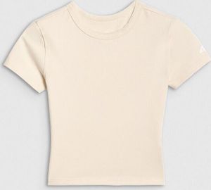"The F2393 T-shirt from 4F is the perfect choice for women who value style and comfort in equal measure. This slim fit shirt is made from high-quality singlejerseyknit and is particularly comfortable to wear thanks to the special peach effect. The use of wool as the main material ensures that the shirt is lightweight and perfect for warm summer days. The crop top cut gives the shirt a modern and youthful touch that is ideal for casual and sporty outfits. Enjoy the freedom and comfort that this stylish top offers and make it an essential part of your summer wardrobe."