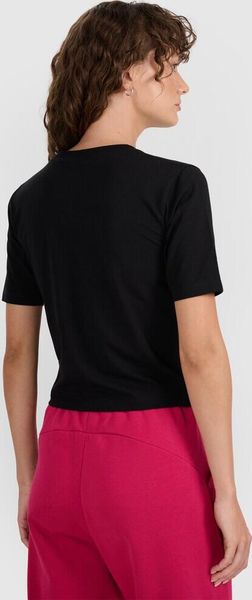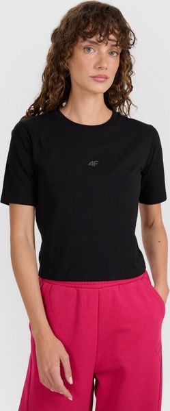 "The F2971 T-shirt from 4F is the ideal choice for women who value style and functionality. This plain T-shirt is perfect for relaxed leisure activities and everyday urban life. The slim fit elegantly hugs the body and ends in a fashionable, cropped cut at waist height, giving it a modern touch."